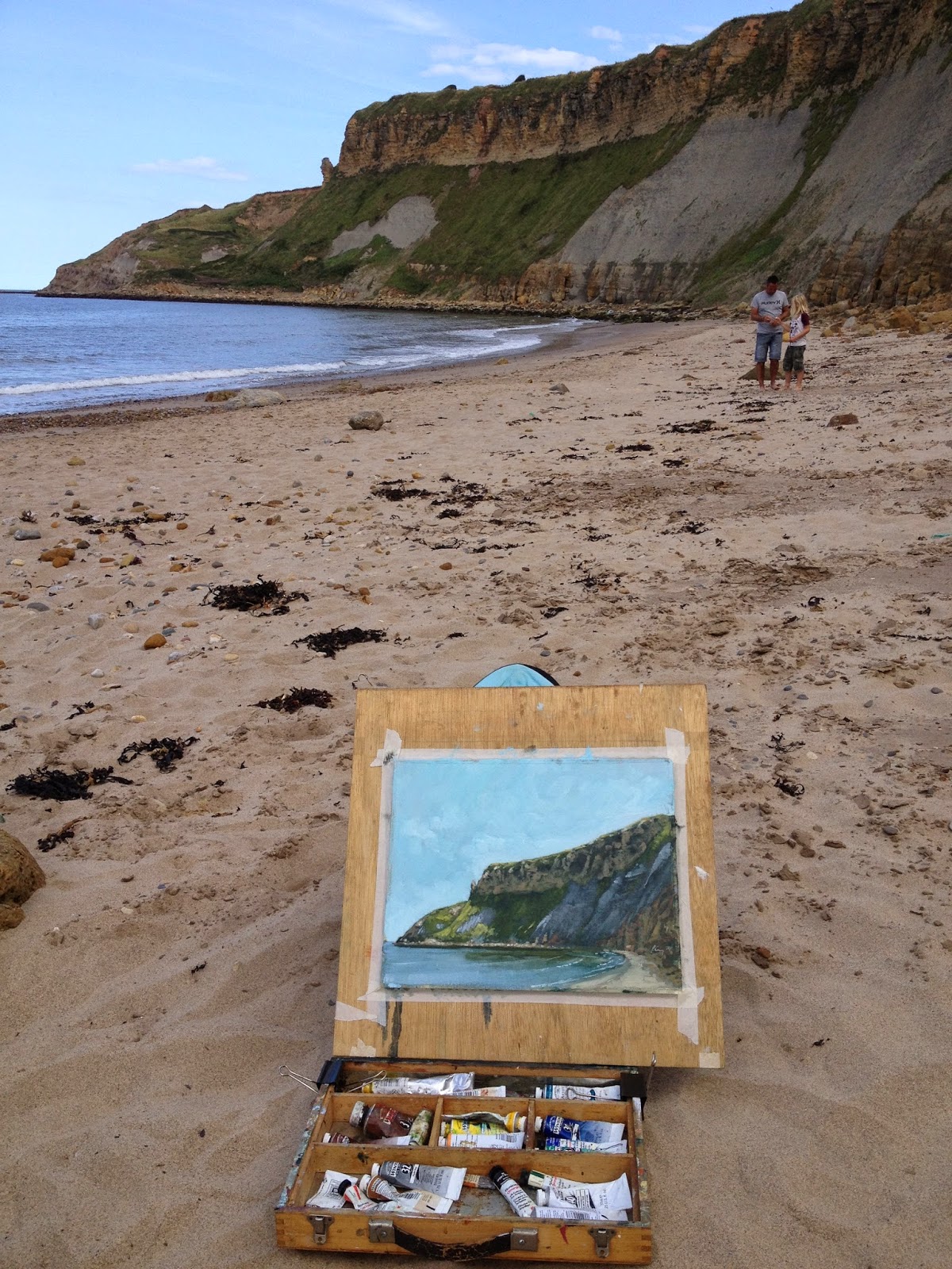 Pushing the paint around a little and suggesting buildings and windows in the background.